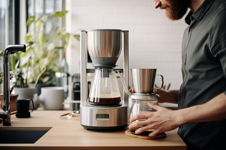 Mystery Man Brewing Unconventional Delights with Drip Coffee Maker in Kitchen