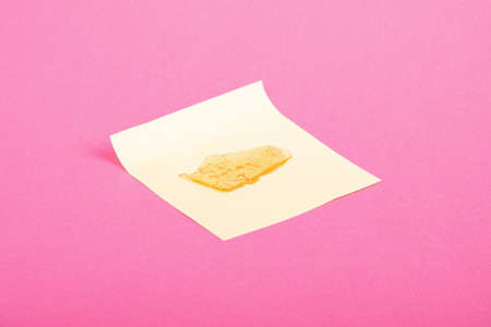 gold cannabis resin ,high thc wax on paper close up.
