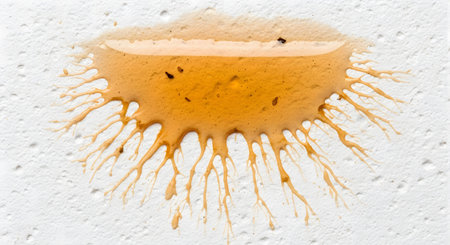 close up macro of a coffee stain on a white background