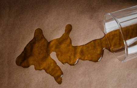 Glass of Water Spilled on Craft Paper. Top View, Close up shot