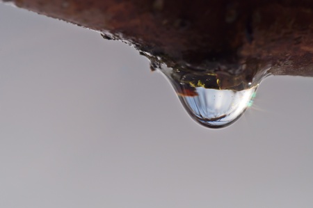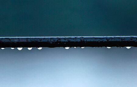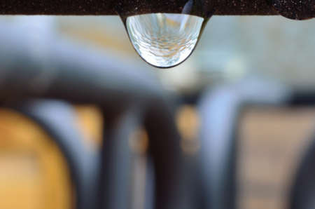 Drop of water on the pipe after the rain close-up.