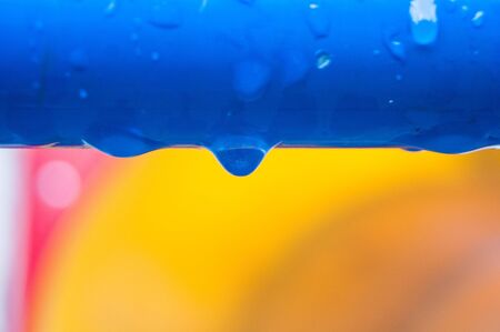 Blue pipe on an orange background in raindrops.