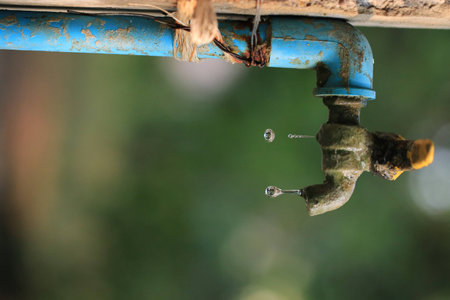 water dripping from the pipe, selective focus, image noise and blurred