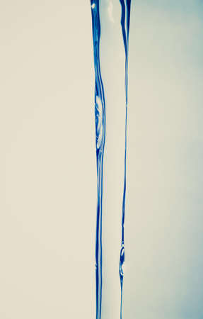 Drops of water close-up macro with a sunlight fall on the heavy splash water surface on a blue background