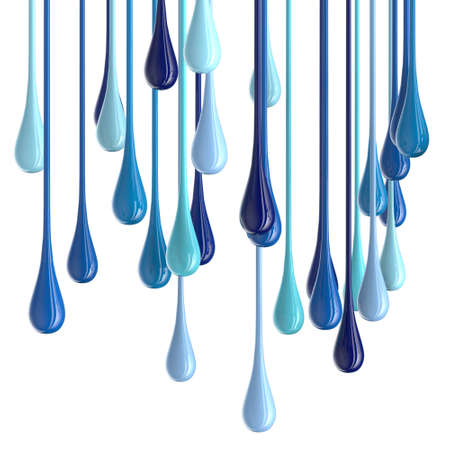 3D blue glossy paint drop blobs isolated on white. 3D rendering