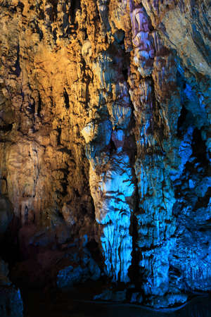 Inkaya cave in Izmir. Close up view cave formations. Guzelbahce, Yelki, Turkey