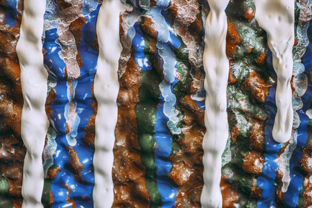 Close-up of colorful mineral formations. The intricate and natural patterns are perfect for themes related to geology, minerals, and natural beauty.