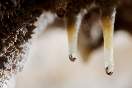 Drop by drop gushing from a small hole in a natural spring, concept of pure water