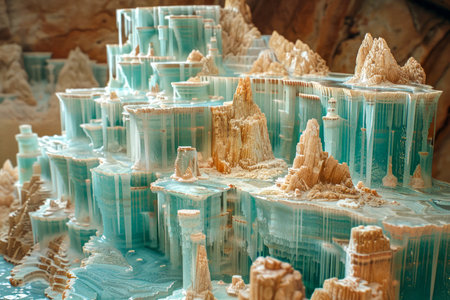 Surreal Turquoise and Beige Crystal Formations in a Fantastical Mineral Landscape, Artistic Geological Concept Background AI Generative