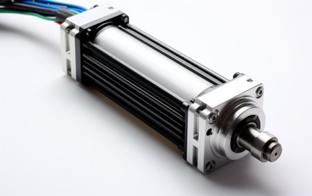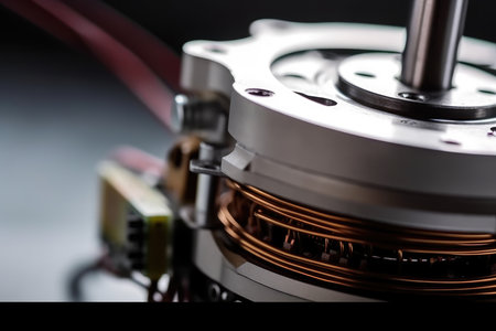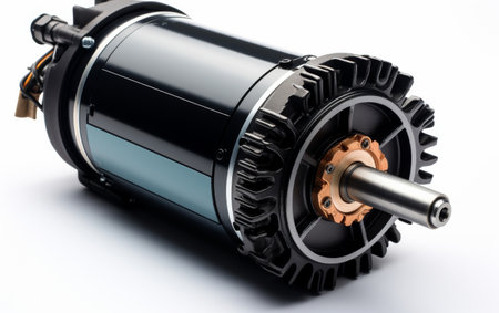 Close-up of a high precision servo motor with metallic gears and intricate wiring for industrial automation applications