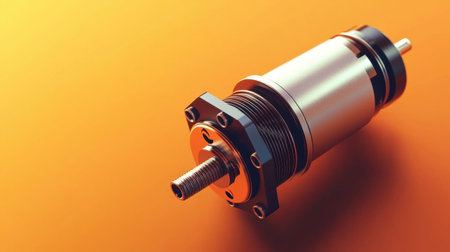 This image showcases a modern electric motor, highlighting its intricate details and textures against a vibrant orange background. The clear focus accentuates its industrial design and functional components.