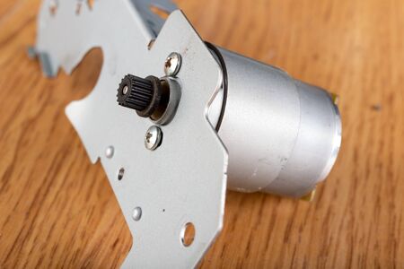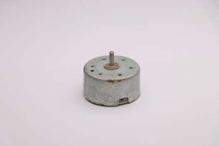 Small electric motor for the oven. Household appliance repair accessories. Dark background.