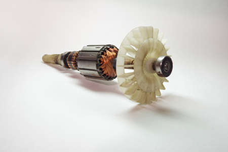 Rotor of high-speed electric motor. Isolated on white background. Selective focus