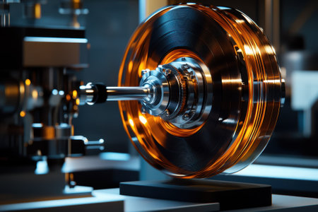 Innovative equipment operates on a spinning component, highlighting advanced technology and craftsmanship.