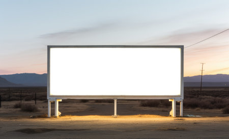 blank billboard white background illustration aesthetic clean, blue backdrop, openness possibility blank billboard white background