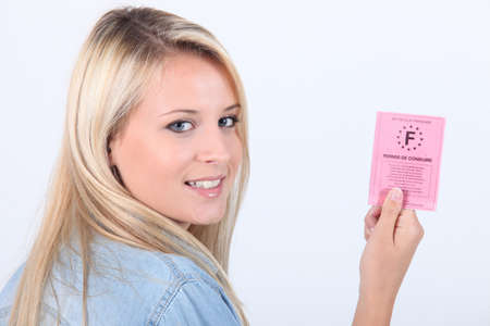 Teenager girl showing his driver's license in the car window after passing the exam or at the request of the traffic police