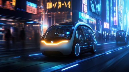 Generative AI, futuristic taxis in modern cities