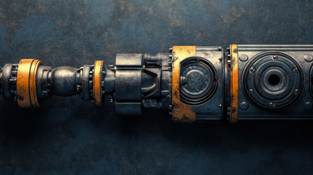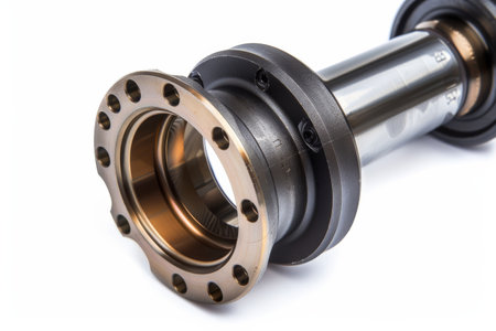 A close-up view of a precision engineering component, showcasing intricate metal textures and detailing, ideal for industrial and manufacturing contexts.