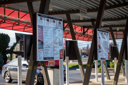 Bellevue, WA USA - circa November 2021: Angled view of a Burgermaster fast food drive in on a bright, sunny day.