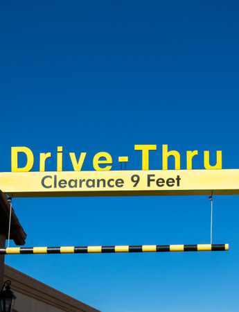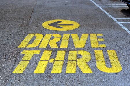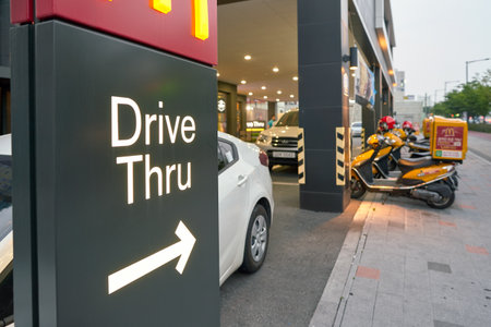 BUSAN, SOUTH KOREA - CIRCA MAY, 2017: Drive Thru sign at McDonald's. A drive-thru is a type of service provided by a business that allows customers to purchase products without leaving their cars.