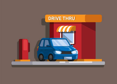 Car in Drive thru fast food restaurant illustration cartoon vector