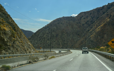 CALIFORNIA, USA - NOVEMBER 27, 2019: car on the road in a mountain canyon in California