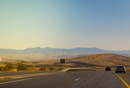 road in the morning, road with Mountain, Kazakhstan road and nature. High quality photo