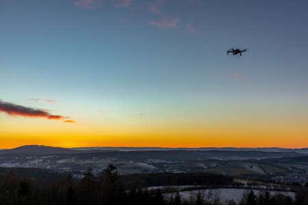 Drone silhouette at sunset time