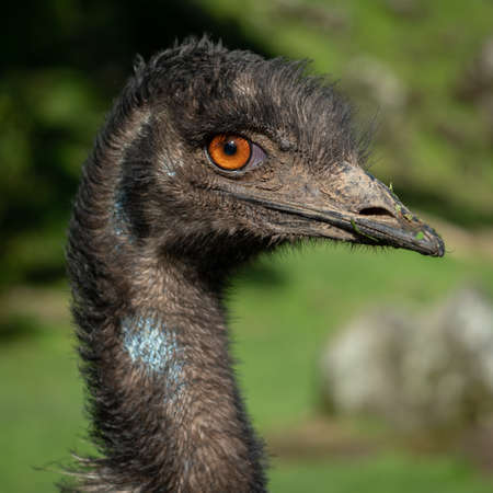 Emu- (Dromaius novaehollandiae) head shot very close with orange looking eye