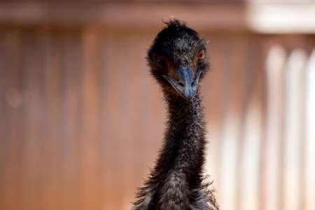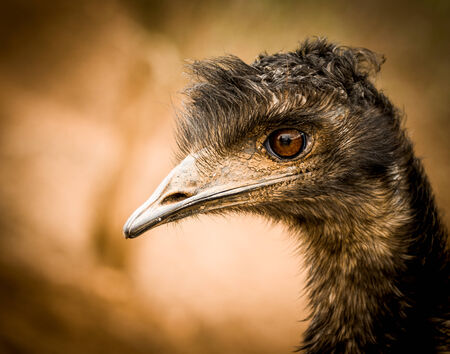 Emu Bird close-up with brown background