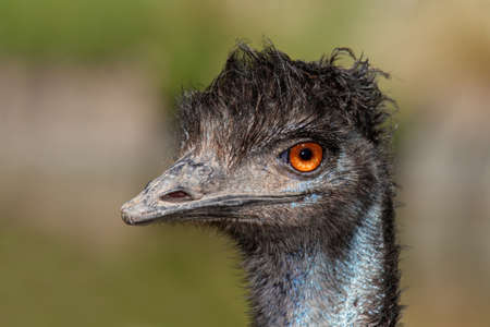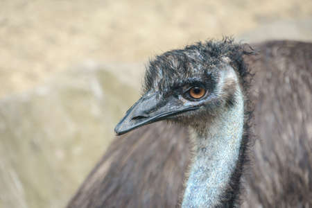 Close up portrait of the funny australian emu with big orange eyes (Dromaius novaehollandiae)