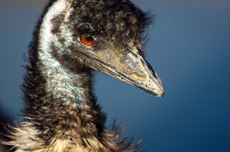 Closeup portrait of an emu head.