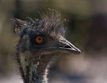 Closeup of the head of an Emu on blurred natural background.