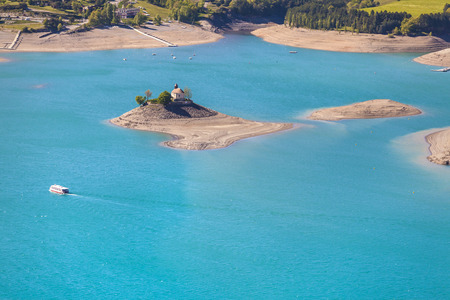 Lake of Serre-Poncon, near Embrun (Hautes-Alpes, Provence-Alpes-Cote d'Azur, France) at summer