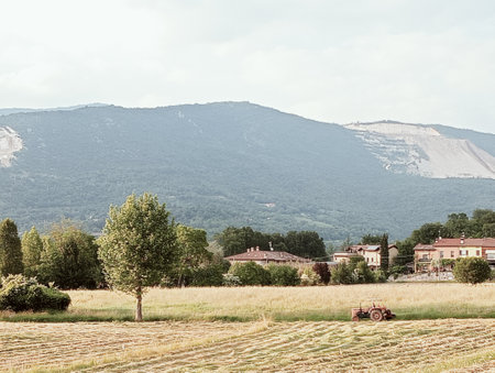 Hay field in Provence countryside. Summer vacation in France