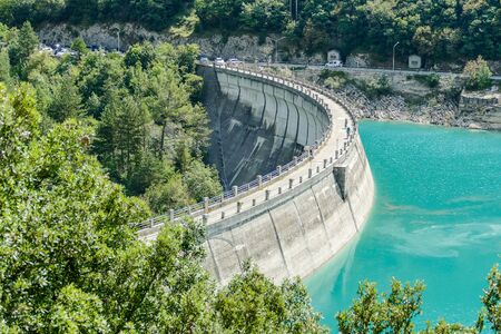 Water dam on the Rhone River. Overlooking the surrounding mountains in the Ardeche.