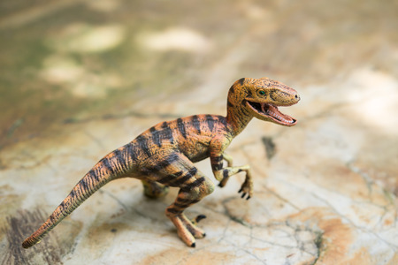 Tyrannosaurus rex dinosaurs toy on nature background.