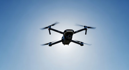 Aerial image of a drone in flight, capturing the innovation of modern technology.