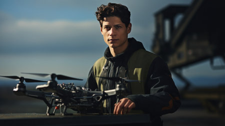 illustration of young man with a flying drone with Generative AI