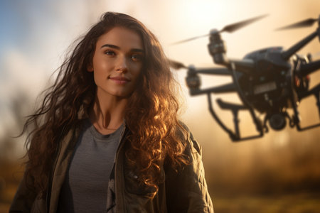 illustration of young woman with a flying drone with Generative AI