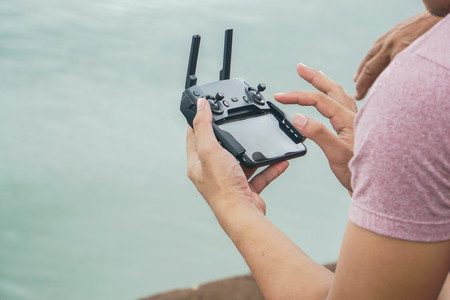 Remote Control Drone Hobby Leisure Entertainment Technology Innovation Concept. installation of the joystick