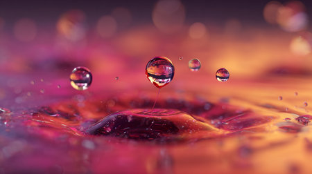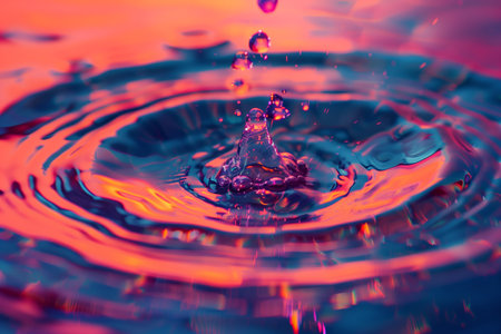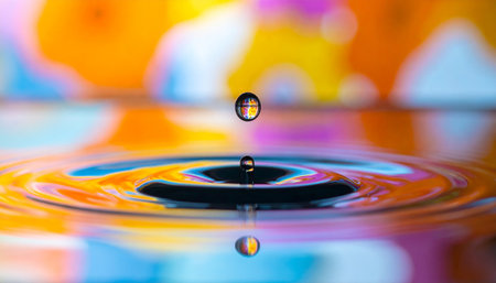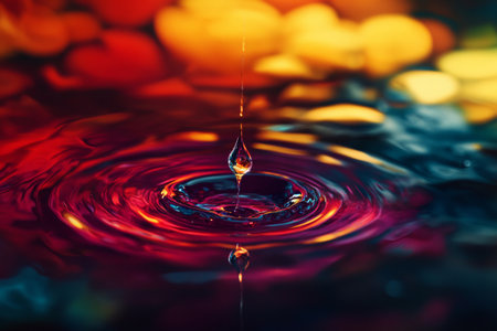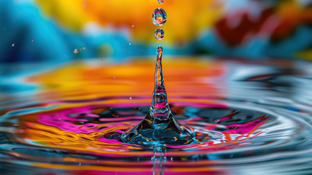 Captivating water drop collision creates mesmerizing ripples on the colorful water surface