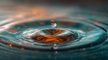 Captivating water drop falling into liquid creating mesmerizing ripple effects