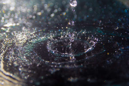 Drop of water falling into water surface, macro photo