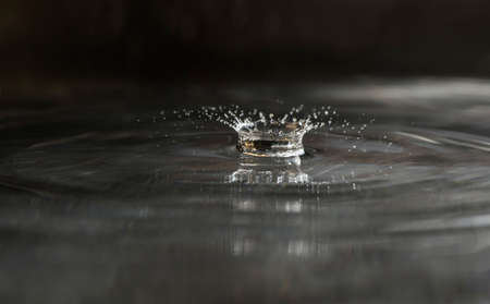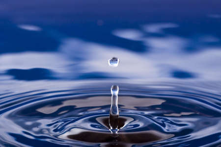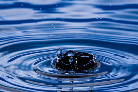 Water drop close-up macro photography with ripples on water surface