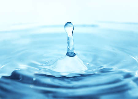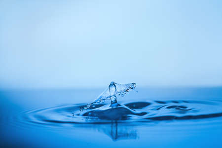 Environmental abstract background. Blue droplet splashing in clear clean water