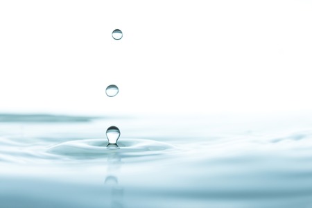 Drops of water falling on the water surface bluish with white background