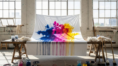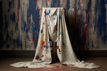 paint-splattered apron draped over a canvas, created with generative ai