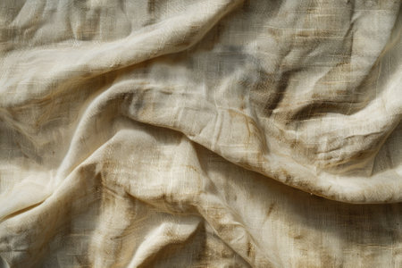 A beautifully detailed close-up of soft, wrinkled fabric in natural beige tones, showcasing its delicate texture and gentle folds, ideal for various creative projects.