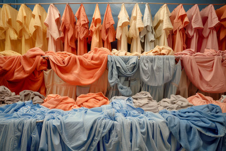 Colorful clothes and linens elegantly swaying in the breeze on a clothesline, creating a mesmerizing visual display.